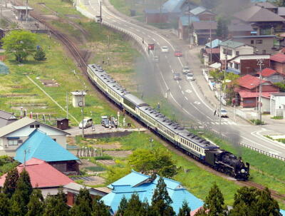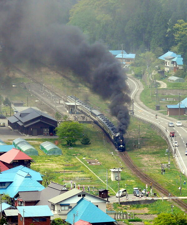 SLばんえつ物語号の日出谷駅出発光景を集録するために、今回は日出谷駅正面俯瞰地から集録を行った。
